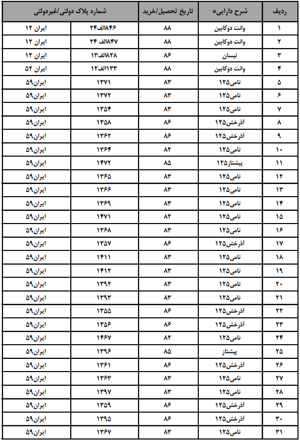 حراج 31 دستگاه خودرو و وانت و موتورسیکلت های کارکرده (دولتی) :